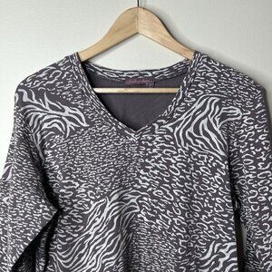 Fresh Produce 3/4 Sleeve Shirt Women 12F Animal Printed V Neck Cotton Top XL