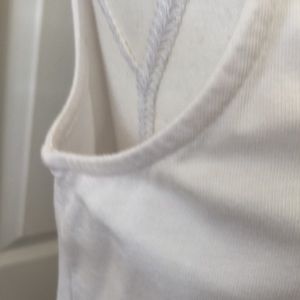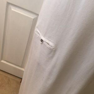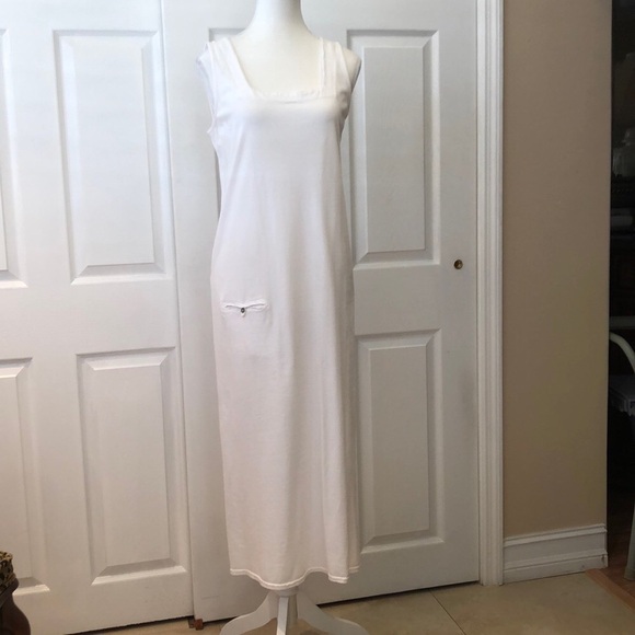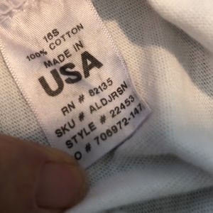 100% Cotton Made in USA size LG sleeveless spit on both sides low pocket. Must have! Pit to Pit 19 in