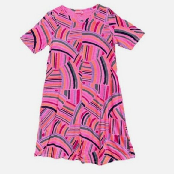 Fresh Produce Abstract Dress in hot pink with scoop neck and side pockets. In excellent condition, Size Medium
