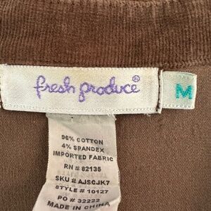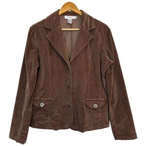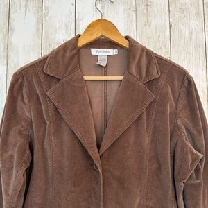 Fresh Produce Blazer Jacket Womens M Brown Corduroy Pockets 3 buttons Stretch