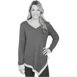 Fresh Produce Blue French Terry Asymmetric Hem Oversized Tunic Top Size XS S