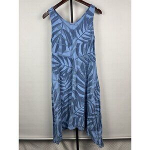 Fresh Produce Blue Sleeveless Palawan Palm Lydia Asymmetrical Hem Dress Size S/M