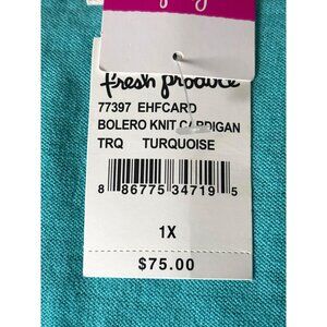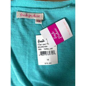 Fresh Produce Bolero Cropped Knit Cardigan Sweater Turquoise Size 1X NWT $75