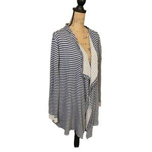 Fresh Produce Cardigan in a size XL. Good condition. Blue and white colors stripes. Laying flat pit to pit 24in. Length is 30.5in. Has pockets.