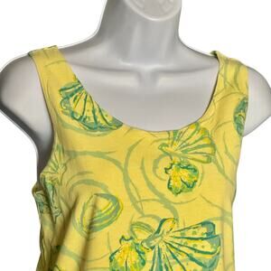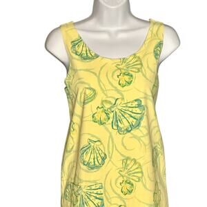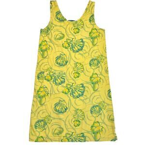 Fresh Produce Coastal Shells Sleeveless Dress Beach Shift XS Yellow Aqua Cotton