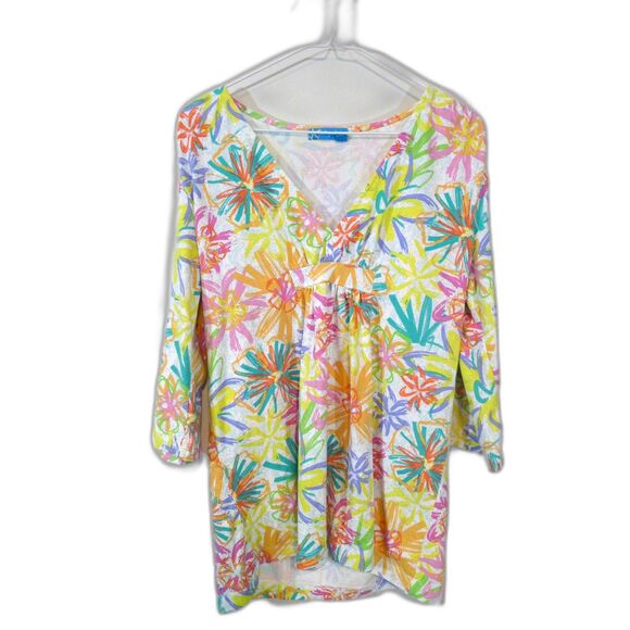 Fresh Produce Colorful Floral Abstract Print Empire Waist Top - MD/LG