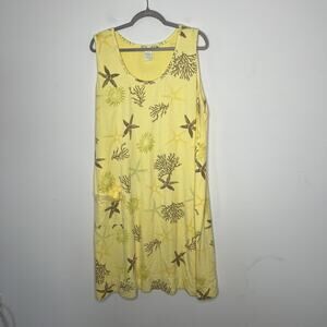 Fresh Produce Dress Womens 3X Yellow Sleeveless Made USA Starfish Print Pocket