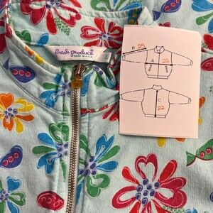 Fresh Produce Floral Sky Blue Full Zip Crew Neck Sweater Women's Size Large – Small Flaw