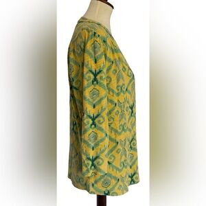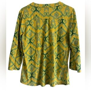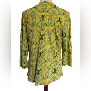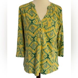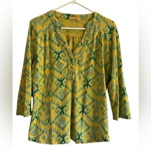 Fresh Produce Jersey Blouse Roll Tab Sleeves Yellow Green Top Size Large USA