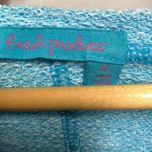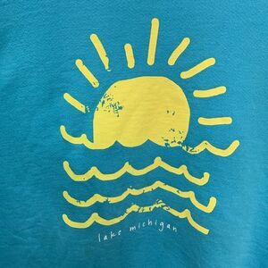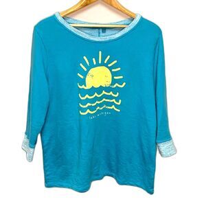 Fresh Produce Lake Michigan Graphic Turquoise Open Neck 3/4 Sleeve Sweatshirt XL
