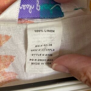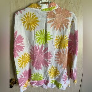 Fresh Produce Linen Button Front Top White Pink & Orange Floral Daisy Sz XL
