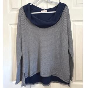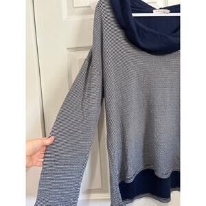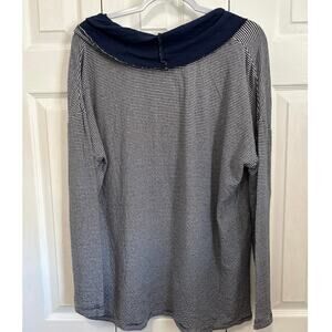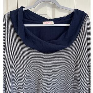 Fresh Produce Navy Blue and White Striped Cowl Neck Cotton Top Large