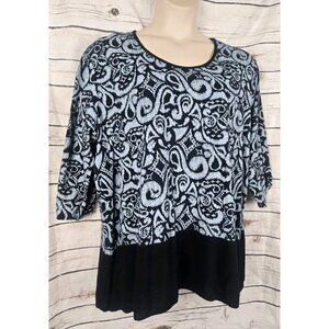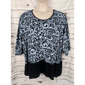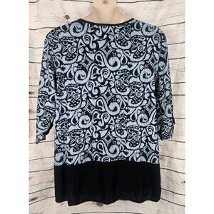 Fresh Produce Navy Slub Knit Top Tee 3X 100% Cotton 3/4 Sleeves Vintage Womens