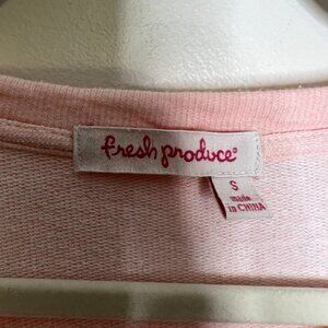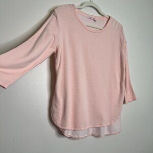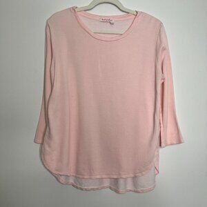 Fresh Produce Pink Curved Hem 3/4 Three Quarter Sleeve Basic Cotton Blend Top