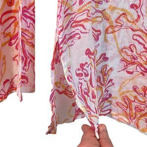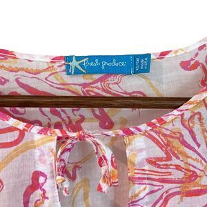 Fresh Produce Pink Orange Coral Print Bell Sleeve Tunic Top XS Asymmetric Cotton