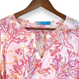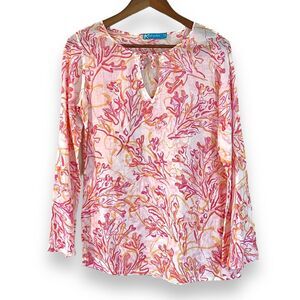 Fresh Produce Coral Print Long Sleeve Tunic Size XS Asymmetric Hem.