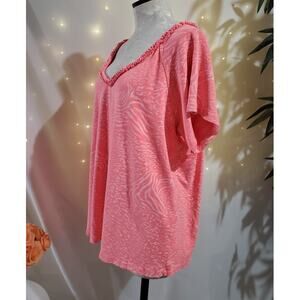 Fresh Produce Womens Ruffle Animal Print Top Plus Size 2X Bright Neon Pink Short Sleeve Leopard Zebra