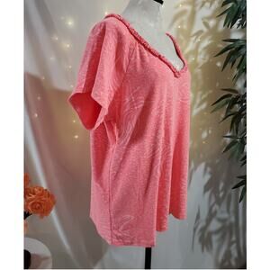 Fresh Produce Ruffle Animal Print Top 2X Bright Neon Pink Short Sleeve Leopard