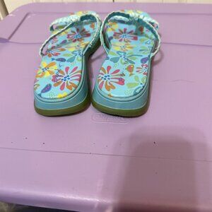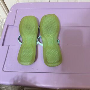 Fresh Produce Sandals Beach Rubber Sole Braided Blue Summer Womens 8...preowned pretty good condition...approx 1" heel...see pics