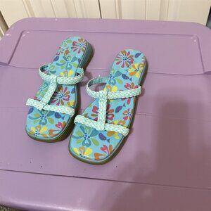 Fresh Produce Sandals Beach Rubber Sole Braided Blue Summer Womens 8 Strappy