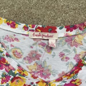 Fresh Produce T-Shirt Womens Large Floral White Pink V-neck Preppy Colorful