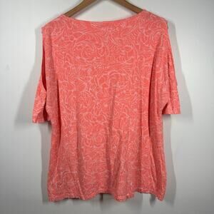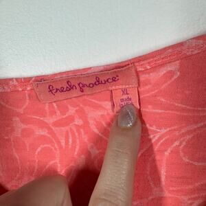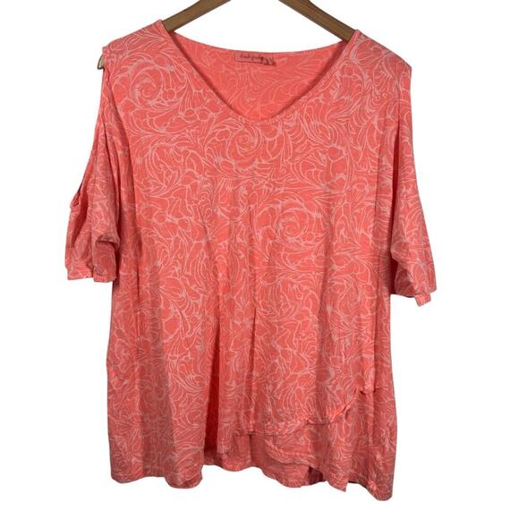 Fresh Produce Top Women XL Peach Coral Short Sleeve Cold Shoulder Spring Floral