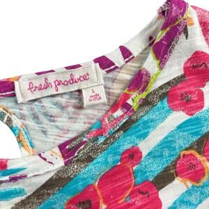 Fresh Produce Tunic Women Sz Large White Multi Color Floral Tropical Coastal Top