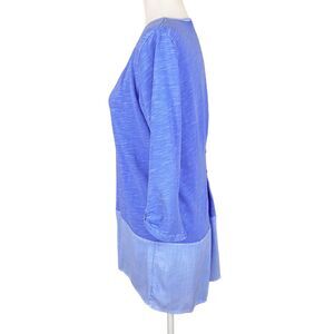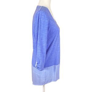 Fresh Produce Two-Tone Tunic Top Size S Blue Cotton Blend Button-Back 3/4 Sleeve