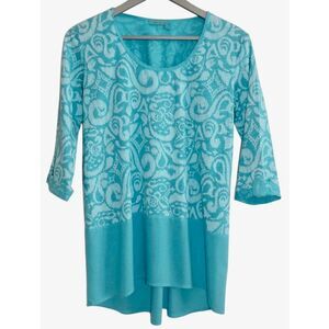 Fresh Produce Wander Windfall Slub Knit Button Back Top Aqua Blue Size XS