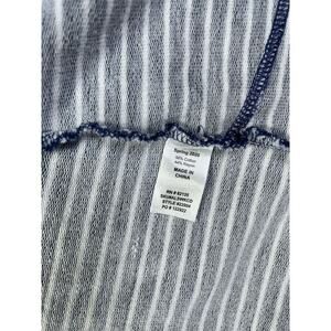 Excellent condition, no visible flaws, Fresh Produce cardigan jacket is perfect for any casual occasion. The blue striped pattern and nautical design add a touch of bohemian style to your outfit. With a relaxed fit and long sleeves, this cotton blend garment is comfortable and machine washable for easy care. The open front neckline and pockets accents make this cardigan jacket unique and practical. The size is Large and it fits regular size type. This garment is suitable for all seasons including winter, summer, fall, and spring. Whether you're going to the beach or just out for a casual walk, this cardigan jacket is a must-have.