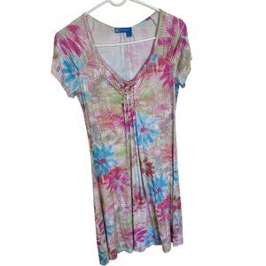 Fresh Produce Womens Dress Tie Dye Short Sleeve Small Rayon USA Multicolor
