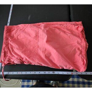 slash pockets bright vibrant neon mature drawstring modern summer spring solid casual zip button Women's skirt, Fresh Produce, coral skirt, cotton skirt, knee-length skirt, casual skirt, summer wear, large size, front pockets, coral clothing, machine washable, breathable fabric, comfortable wear, elastic waist midi
