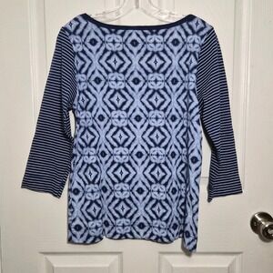Fresh Produce Women's L Top 3/4 Sleeve Blue Diamond Stripe Casual Shirt