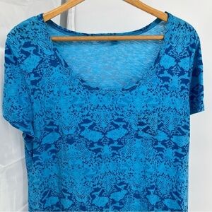 Fresh Produce Womens Patterned Top Size XXL Round Neck Asymmetrical Hem Blue