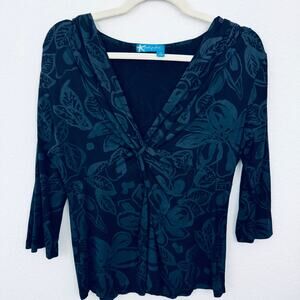 Fresh Produce Womens Pullover Knot Top Size M Vintage Stretch Floral Black