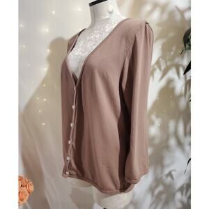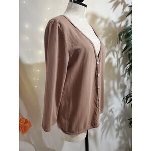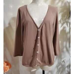 Fresh Produce Womens V-Neck Button 3/4 Sleeve Cardigan Size L Tan Cotton Neutral