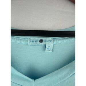 Fresh Produce Womens V-Neck T-Shirt 2X Light Blue 100% Cotton Made In USA