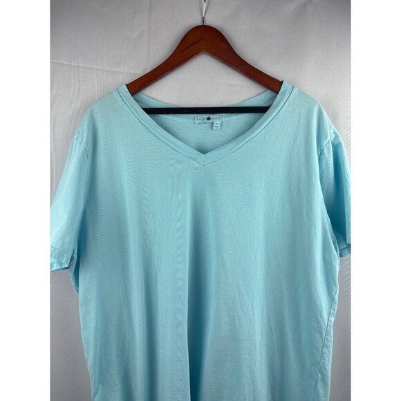 Fresh Produce Womens V-Neck T-Shirt 2X Light Blue 100% Cotton Made In USA