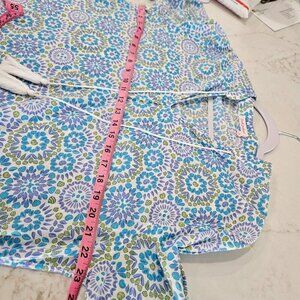 Fresh Produce XL Tunic Top Mosaic Shells Corine Blue Green Cotton Tie Neck