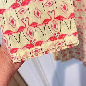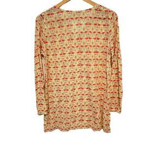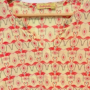 Fresh Produce XS/S Yellow Pink Flamingo Long Sleeve Tunic Top 100% Cotton Beachy