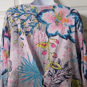 Fresh Produce lilac floral print tunic top beach vacation cruise Sz 2X EUC
