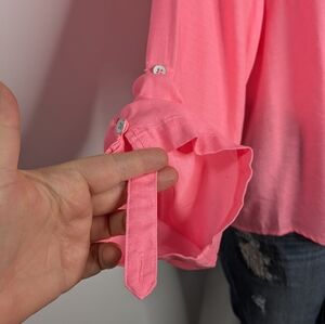 Fresh Produce pink 100% cotton button up long sleeve tie front shirt 2X. Spring 2020 line. Good condition.