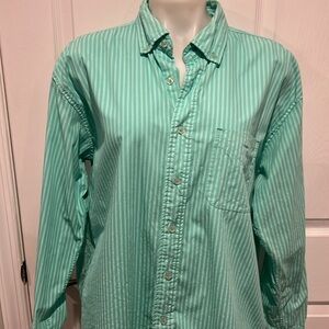 Fresh Produce teal green striped long sleeve cotton button down top L