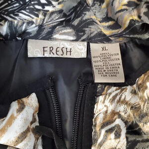 Fresh Puffer Vest XL Multicolor Abstract Feather Print Sleeveless Zip-Up