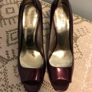 They are purple heels with a gold outline and are in good condition