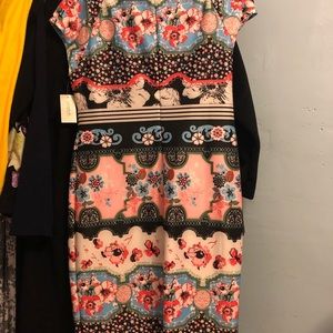 It is a midi length dress that is colorful and is a 14 in adults and is in great condition it is brand new.