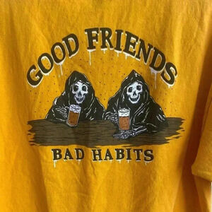 💥Fresh Vibes Good Friends Bad Habits Yellow Tee L