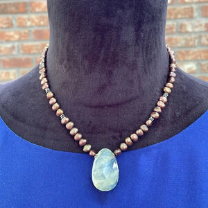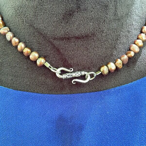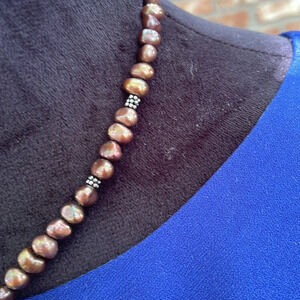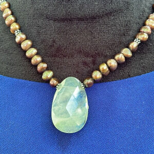 Beautiful Freshwater pearl necklace handcrafted bronze color faceted pineapple quartz fine quality beads, Sterling silver S clasp ( new) 17” long