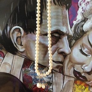 Fresh water pearls necklace and earrings. Earrings have been loved and that french hooks display this. A close up of the clasp is pictured. Pearls are timeless and always classy.