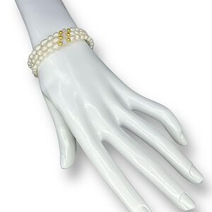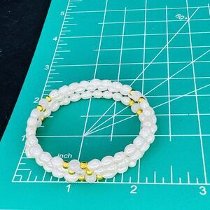 Fresh Water Pearl Wire Wrap Beaded Bracelet with Glass & Gold Bead Spacer